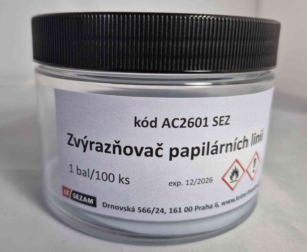 Zvýrazňovač papilárních linií zvýrazňuje a zkvalitňuje otisky papilárních linií. Po aplikaci zvýrazňovače lze získat použitelné otisky prstů od osob těžce manuálně pracujících, starších lidí nebo od kohokoliv, kdo má málo zřetelnou strukturu rýh papilárních linií.